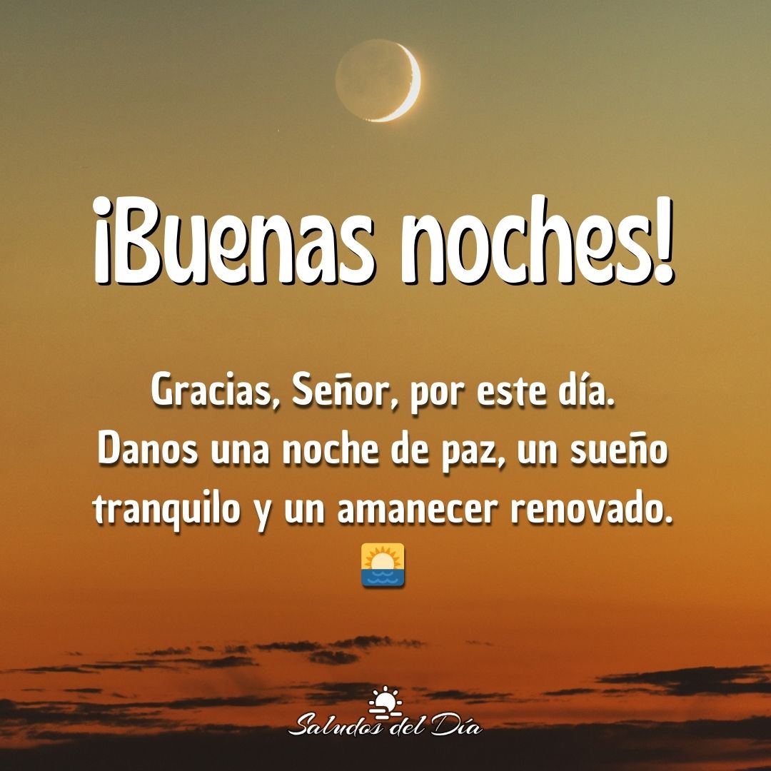 Buenas noches Buenas noches Gracias, Señor, por este día. Danos una noche de paz, un sueño tranquilo y un amanecer renovado. 🌅 Comparte este mensaje Anterior Buenas noches Siguiente Buenas noches