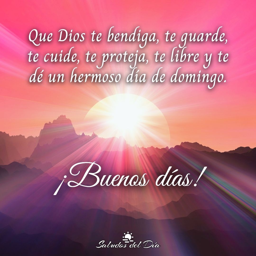 Buenos días y buen domingo Buenos días, Domingo ¡Buenos días! Que Dios te bendiga, te guarde, te cuide, te proteja, te libre y te dé un hermoso día de domingo. ☀️ Comparte este mensaje Anterior Feliz sábado Siguiente Buen domingo