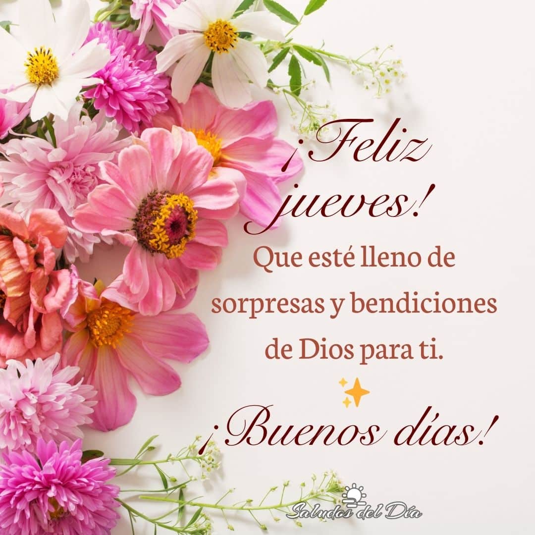 Feliz jueves Buenos días, Jueves ¡Feliz jueves! Que esté lleno de sorpresas y bendiciones de Dios para ti. ¡Buenos días! ✨ Comparte este mensaje Anterior Feliz jueves Siguiente Feliz jueves