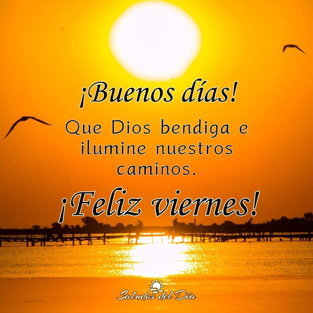 Buenos días y feliz viernes Buenos días, Viernes ¡Buenos días! Que Dios bendiga e ilumine nuestros caminos. ¡Feliz viernes! ✨ Comparte este mensaje Anterior Buenos días y feliz sábado Siguiente Buenos días de domingo