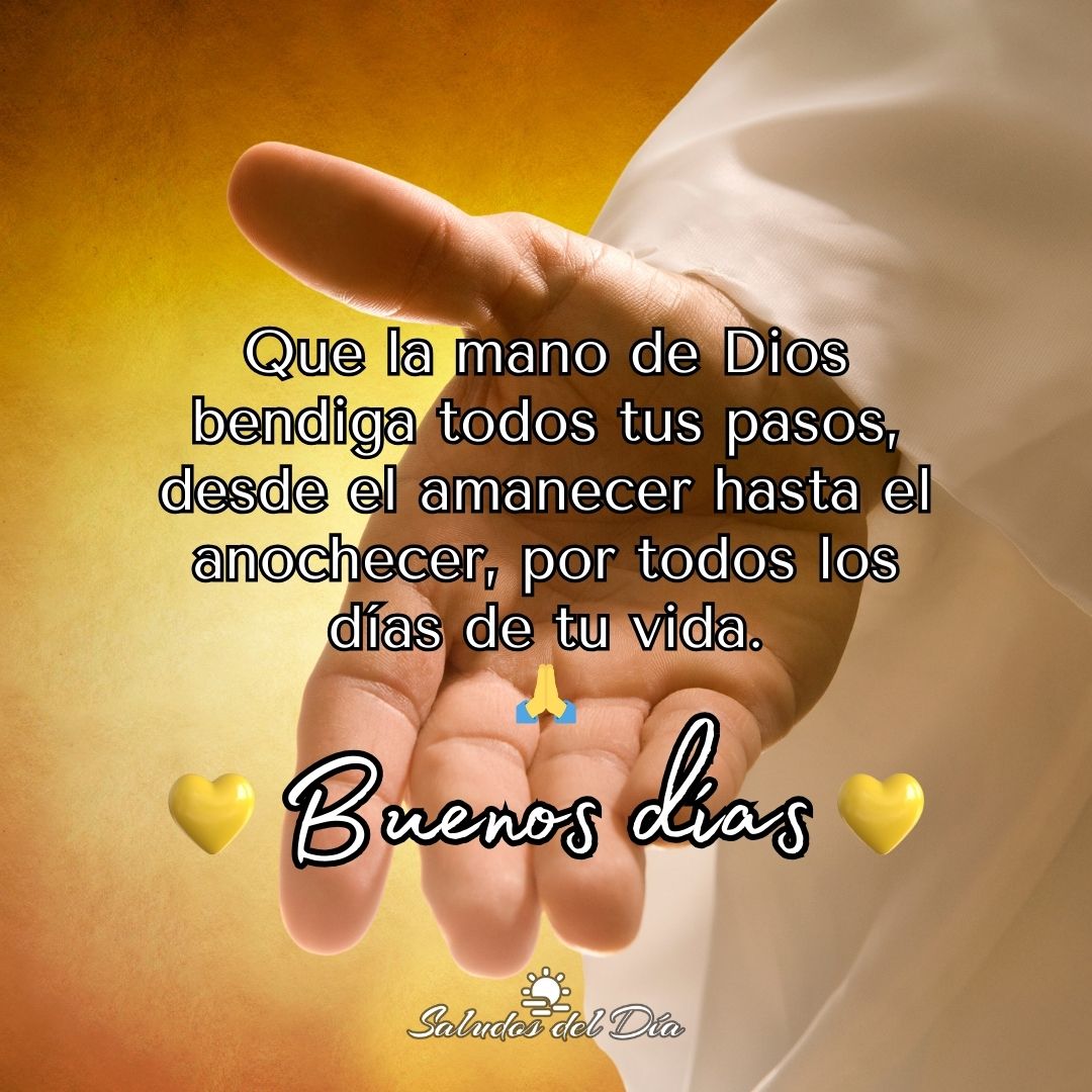 Buenos días Buenos días Que la mano de Dios bendiga todos tus pasos, desde el amanecer hasta el anochecer, por todos los días de tu vida. ¡Buenos días! 🙏 Comparte este mensaje Anterior Buenos días y feliz jueves Siguiente Buenos días
