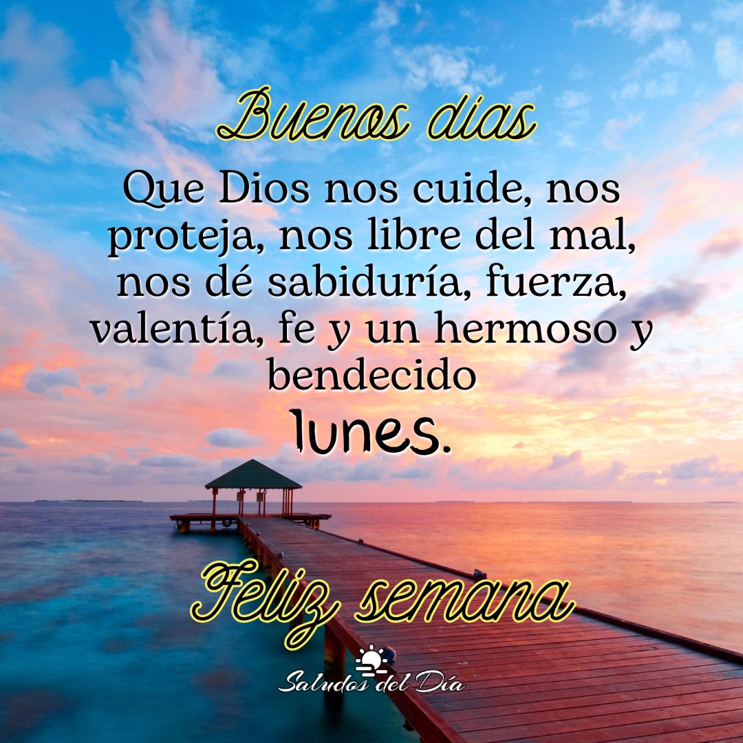 Que Dios nos cuide, nos proteja, nos libre del mal, nos dé sabiduría, fuerza, valentía, fe y un hermoso y bendecido lunes.