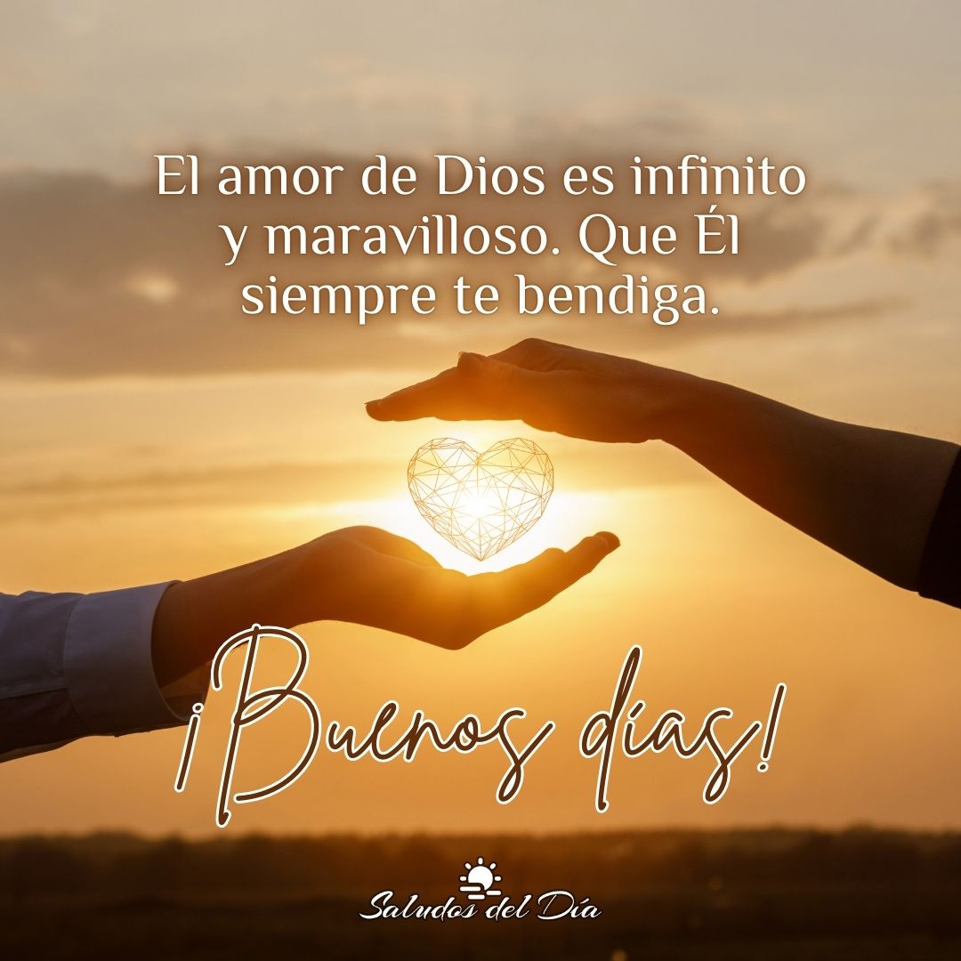 Buenos dÃas Buenos dÃas El amor de Dios es infinito y maravilloso. Que Él siempre te bendiga. 💖 ¡Buenos dÃas! Comparte este mensaje Anterior Buenos dÃas Siguiente Buenos dÃas