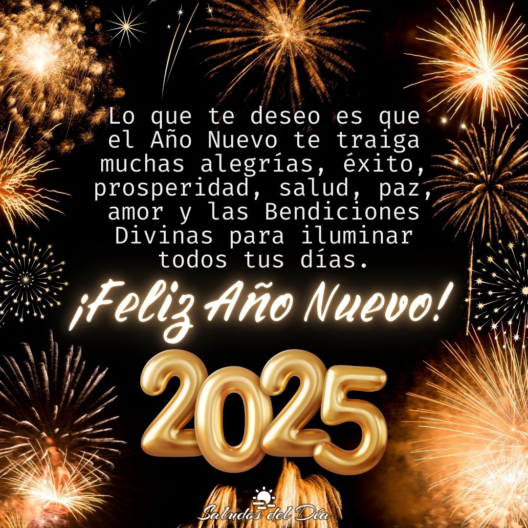 Lo que te deseo es que el Año Nuevo te traiga muchas alegrías, éxito, prosperidad, salud, paz, amor y las Bendiciones Divinas para iluminar todos tus días.