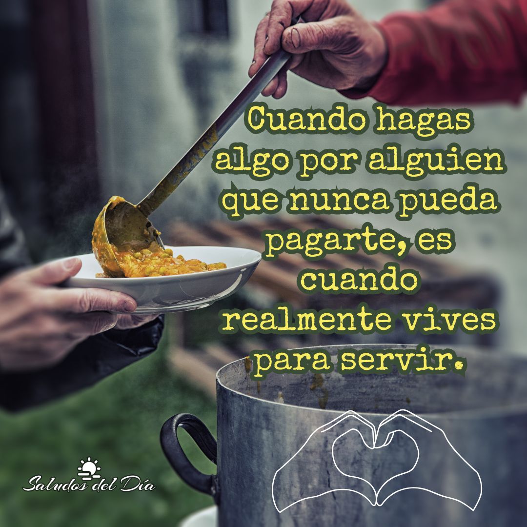 Vivir para servir Reflexiones Cuando hagas algo por alguien que nunca pueda pagarte, es cuando realmente vives para servir. Comparte este mensaje Anterior Buenas tardes Siguiente Feliz Lunes